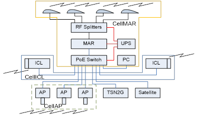 CellCR is the Communications Router used in each train car. Vendor options include Moxa, Cisco or Transition Networks. CellAP is the Wi-Fi Access Point (802.11a, g, n, ac). Vendors include Cisco or Ruckus.
